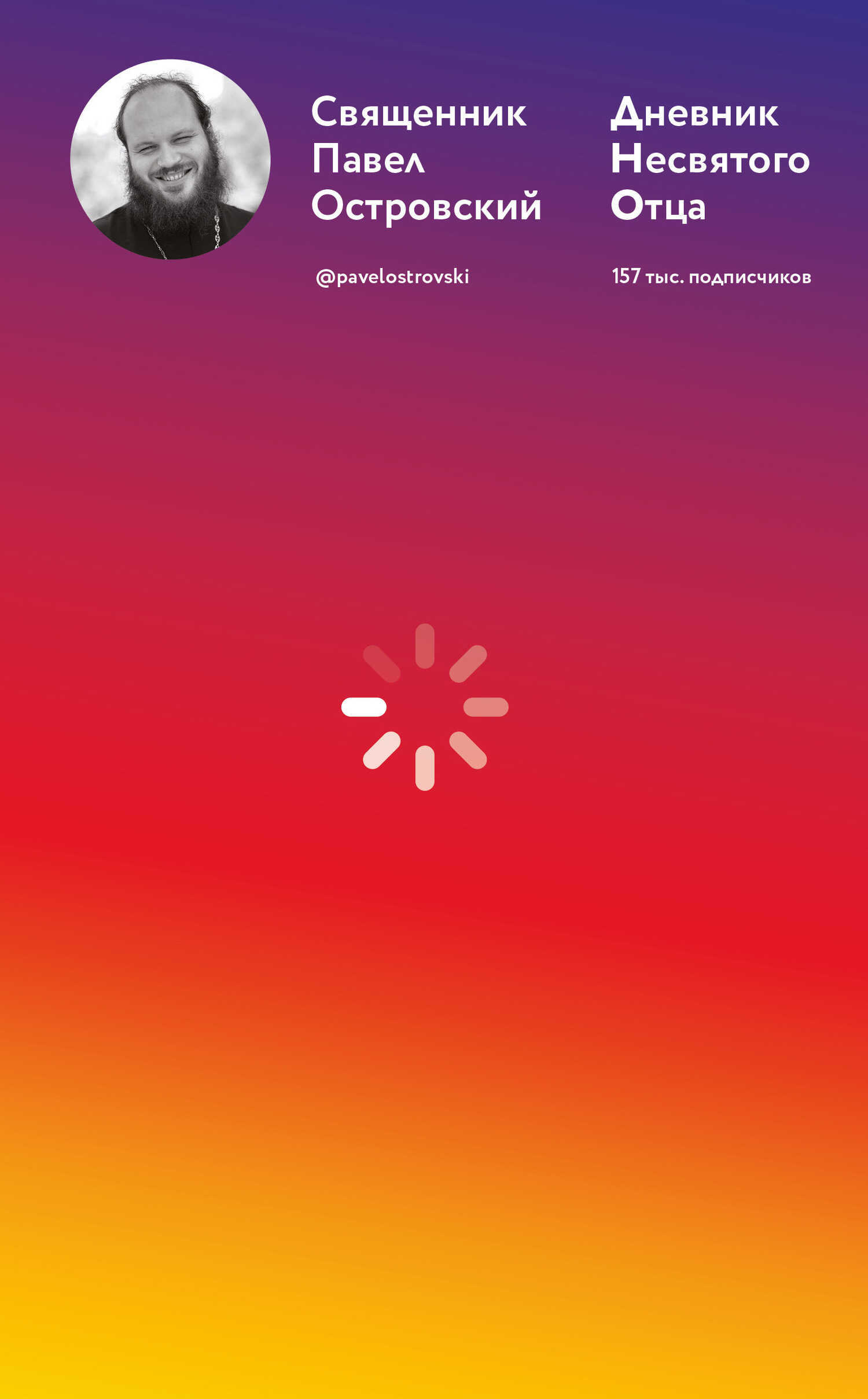 В своем инстаграм-дневнике о. Павел обсуждает самые актуальные проблемы приходской, общественной и семейной жизни – часто с неожиданного ракурса, почти всегда с юмором. Искренние, горячие, талантливо написанные посты о. Павла, хотя и обращены в основном к молодежи, будут интересны всем, кто хочет получить ответы на острые вопросы о вере и Церкви.